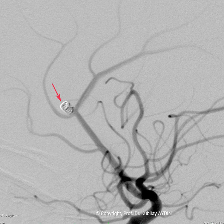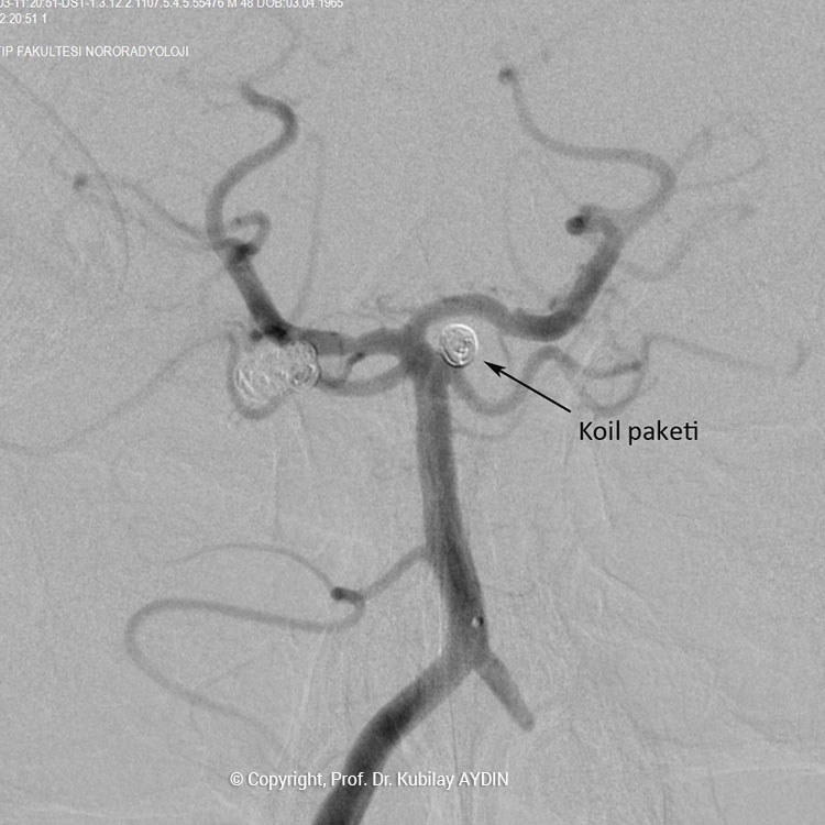 Tüm kapalı anevrizma tedavileri, hasta genel anestezi ile uyutularak gerçekleştirilir. Kapalı anevrizma tedavisinin tüm aşamaları, bacak atardamarı içine yerleştirilen 2 mm çaplı (kurşun kalemden daha ince) bir özel kateter yoluyla uygulanır. Bu küçük giriş noktasından damar içine çok ince (0.5mm çapında) ve yumuşak yapıda mikrokateter adını verdiğimiz özel plastik tüp gönderilir. Anevrizmayı kapatmak için kullandığımız bu mikrokateter, anjiografi cihazında izlenerek anevrizmanın bulunduğu damar içine yönlendirilir. İçi boş, çok ince ve yumuşak bir plastik tüp şeklinde olan mikrokateterin ucu, anevrizma kesesi içine yerleştirilir. Daha sonra bu mikrokateter içerisinden gönderilen platinden yapılmış çok yumuşak “koil” adı verilen tellerle anevrizma kesesi doldurulur. Koiller, anevrizma kesesi içinde bir yumak oluşturup, anevrizma içine kan girişini engeller. Anevrizma kesesi, koillerle tamamen doldurulup, anevrizma içine kan girişi tam olarak durduğu zaman, mikrokateter anevrizma içinden geri alınarak işlem tamamlanır. Anevrizmanın koil adı verilen özel tellerle doldurularak kapatılma işlemine, "koilleme" adı verilir. Anevrizmanın koillenerek kapatılması işlemi, oldukça güvenli ve etkili bir tedavi yöntemidir. Kanamamış beyin anevrizması olan hasta, koilleme yöntemi ile tedavi edildikten 1-2 gün sonra hasta normal günlük yaşamına dönebilir.
